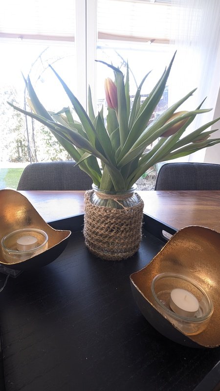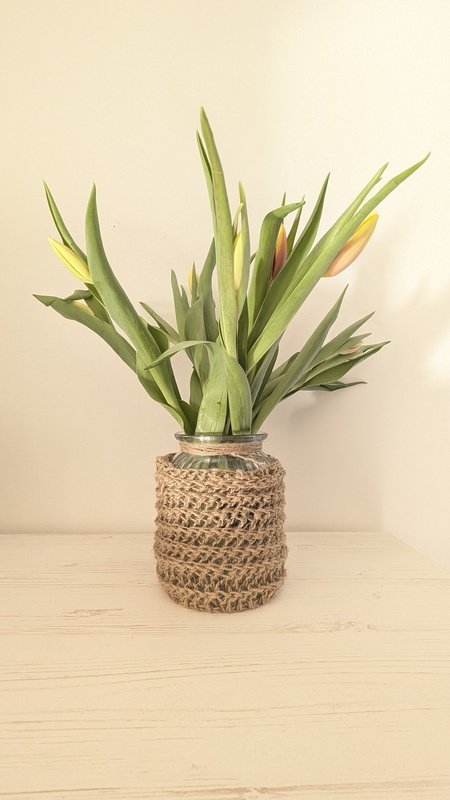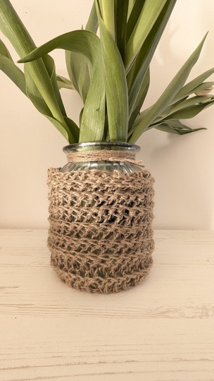 Da die Jute mit der Häkeltechnik am Ende etwas elastisch - könnte es auch mehr sein.