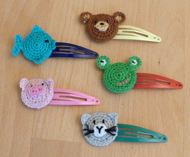 Tierische Haarspangen sind vor allem bei kleinen Kindern beliebt und machen gute Laune. Die Button werden auf Metallhaarspangen fixiert und können nach Lust und Laune farblich variiert werden. Ein hübsches kleines Mitbringsel für Kinder und auch gut geeignet als Mitgebsel beim Kindergeburtstag!
