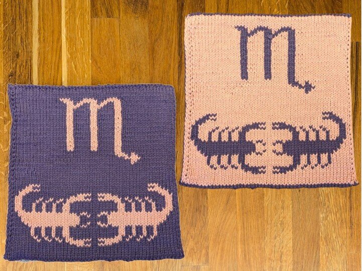 Hier kommt ein weiteres Sternzeichen in Doubleface - der Skorpion. Zum Geburtstag, zu Weihnachten oder einfach als kleine Aufmerksamkeit kannst Du mit diesem Motiv einem lieben Menschen in diesem Sternzeichen eine Freude machen. Nach der einfachen Strickversion gibt es nun auch für den Skorpion die Version zweifarbig in Doubleface gestrickt. Je nachdem, welches Garn Du verwendest, kannst Du einen großen Topfuntersetzer, Topflappen, ein praktisches Spültuch oder einen sanften Waschlappen stricken. Garnvorschläge für die verschiedenen Projekte findest Du weiter unten.