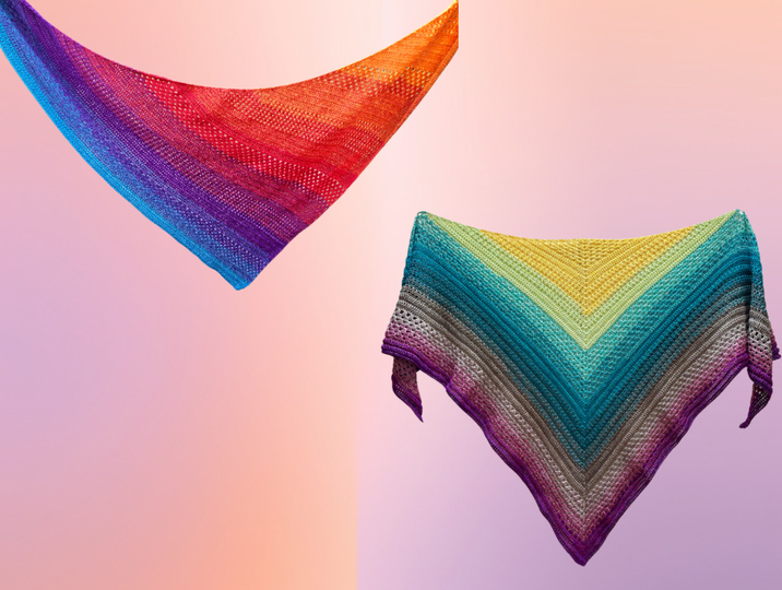 Dieses Anleitungspaket beinhaltet beide Versionen des Dreieckstuchs "Calor": die asymmetrische Variante und die klassische Dreiecksversion.
