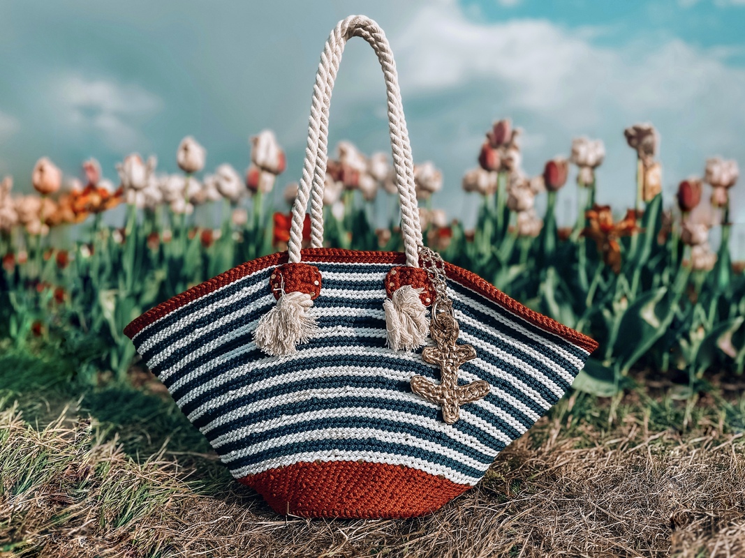 This crochet pattern contains instruction with step-by-step on how to make the striped tote.