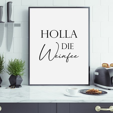 MOTIV: Ein liebevoll gestaltetes Poster mit dem Spruch "HOLLA DIE WEINFEE"