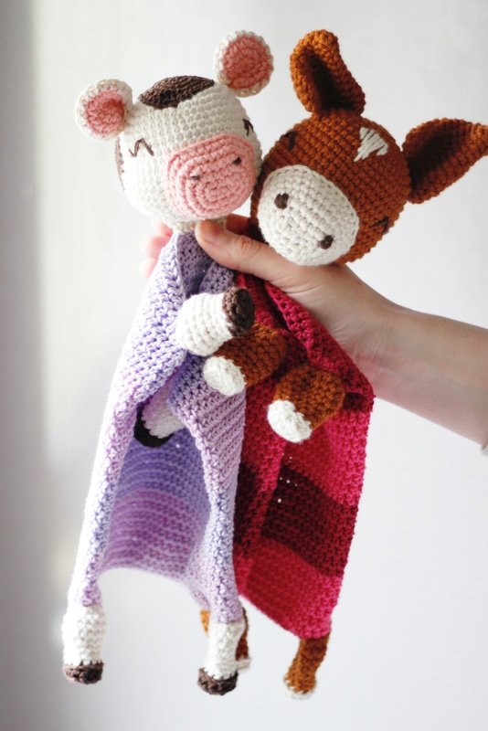 Diese Anleitung beinhaltet zwei niedliche Bauernhof-Tiere: Kuh und Pferd.