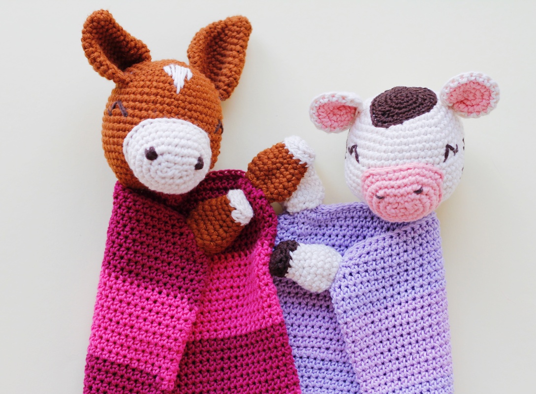 Die farbenfrohen Baumwoll-Schmusetücher sind perfekt für Neugeborene und Babys. Sie machen besonders viel Freude zu häkeln, da wir im Amigurumi-Stil feste Maschen sowie auch einen Teil in lockeren halben Stäbchen häkeln.