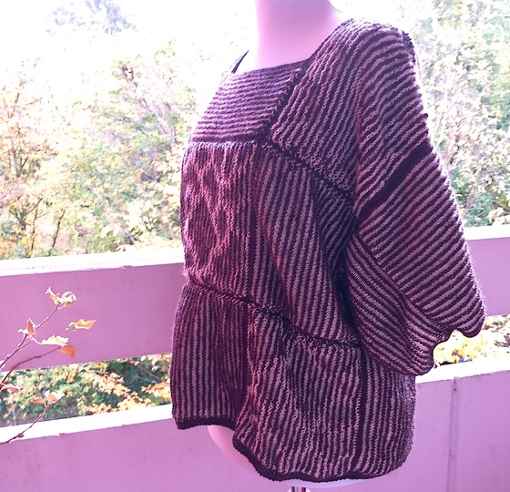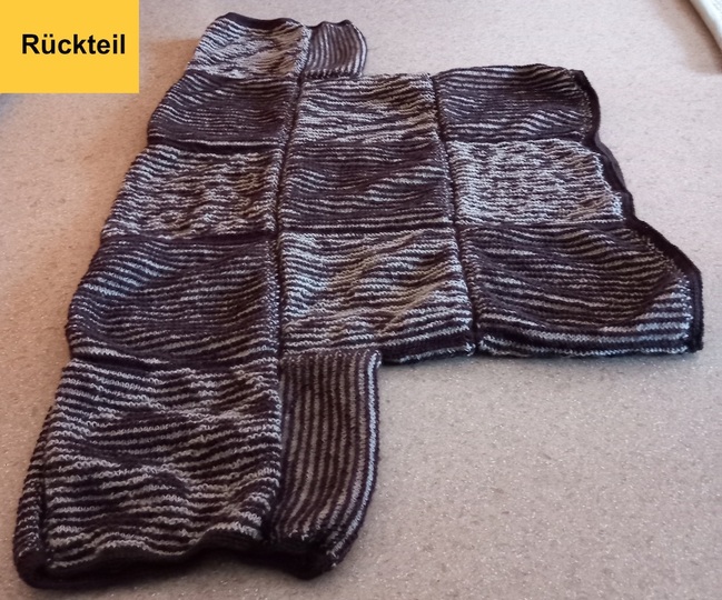 Für Größe 44 habe ich 250 g (5 Knäuel) Sand und 300 g (6 Knäuel) Dunkelbraun gebraucht