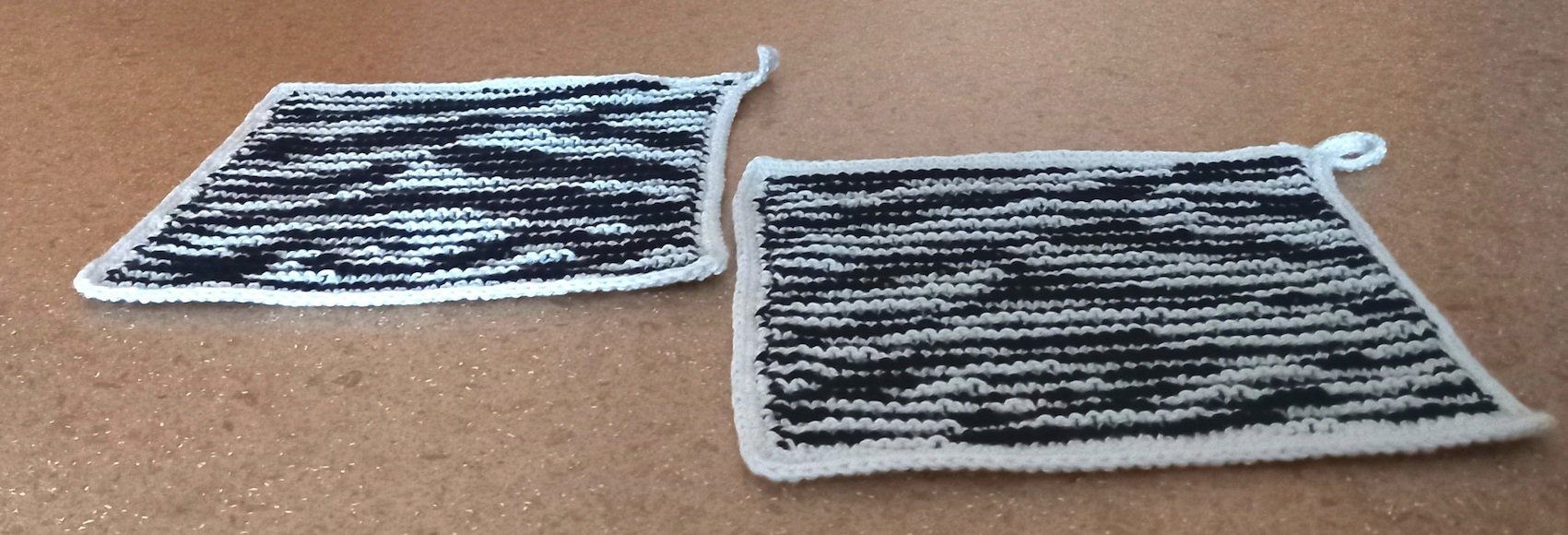Ihr könnt auch dickeres Garn verwenden. In diesem Fall werden die Muster gröber erscheinen, und ihr braucht im Verhältnis weniger Lauflänge.