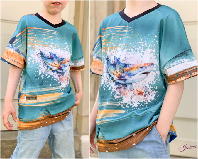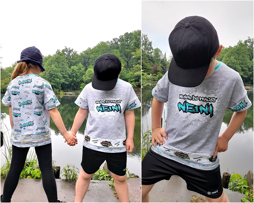 Beim AlldayDude handelt es sich um ein luftiges und weites Shirt im Oversized-Look mit verschiedenen, kleinen aber feinen Details. So kannst du z.B. zwischen einem Rundhals- und V-Ausschnitt wählen, die Spitze des V-Ausschnittes als Teilung beim Rundhalsausschnitt verwenden oder eine tolle Kapuze anbringen, die sich dem V-Ausschnitt anpasst! Der Abschluss des Shirts ist ebenfalls besonders gewählt - hier kannst du mehrere Lagen anbringen ohne dabei das gesamte Shirt doppellagig zu nähen. Dazu wird am Abschluss des Shirts ein weiterer Abschluss in zwei unterschiedlichen Längen angebracht. Möchtest du nur den zusätzlichen Abschluss in der längeren Länge verwenden, kannst du z.B. mit einer Paspel auch einen tollen Absatz erzeugen. Der Abschluss in Länge 1 (kürzere Länge) kann zusätzlich mit einem kleinen Cut-Out genäht werden, der den Stoff des zweiten Abschlusses hervorblitzen lässt. Bei den Ärmeln hast du hier die Wahl zwischen dem direkt gesäumten Armausschnitt für eine sehr luftige Variante oder einen zusätzlichen kurzen Ärmel.
