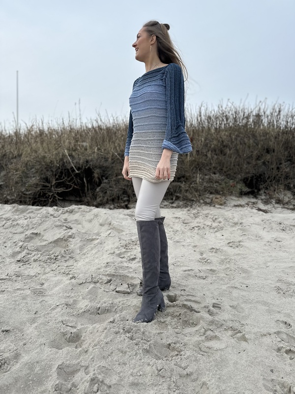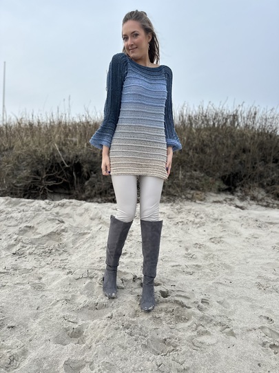 Der 1-Bobbel-Chic-Häkelpulli kann an jede Größe angepasst werden.