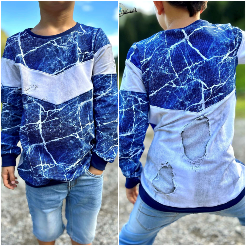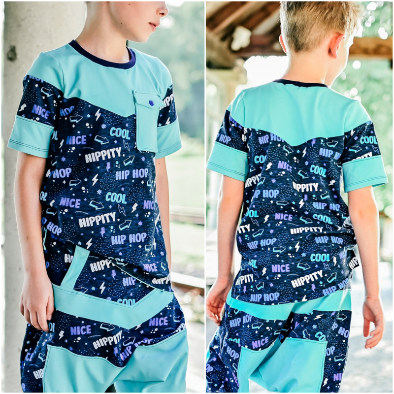 Arrow ist ein cooles und bequemes Shirt mit dreieckigen Teilungen. Diese können je nach Geschmack und Bedarf verwendet werden. Das Shirt hat eine bequeme Passform und bietet verschiedene Ärmelvarianten für jede Jahreszeit. Darunter sind normale und etwas weitere kurze Ärmel, lange Ärmel mit Bündchenabschluss und die Möglichkeit einen Ärmel im Lagenlook zu nähen. Zusätzlich kannst du beim Shirt eine optionale Aufnäh- tasche anbringen. Der Abschluss des Shirts ist auf einen Saum bzw. einen Saumbeleg ausgelegt und bietet neben einer gerade verlaufenden Variante, die Möglichkeit mit Schlitzen und gebogenen Abschlüssen zu nähen. Der Saumbeleg ist nicht als Schnittmusterteil enthalten, sondern wird mit Hilfe des enthaltenen Tutorials zugeschnitten. Arrows Halsausschnitt ist auf ein Halsbündchen ausgelegt.