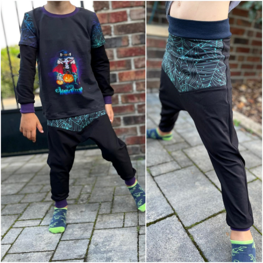 Arrow ist eine coole Haremshose die trotz weitem und auffälligem Schritt über eine eher schmale Form verfügt. Sie ist nicht allgemein ausladend und kann so ein prima Freizeitbegleiter sein. Schmale Beinenden und das Bauchbündchen sorgen für eine bequeme Passform. Arrow macht seinem Namen alle Ehre und gibt mit vielen Teilungen in dreieckiger Form unglaublich viel Gestaltungsfreiraum her. Zusätzlich zu den Teilungen und der besonderen Form gibt es bei Arrow auch Taschenversionen, die von allgemeinen Hosentaschen abweichen. Es gibt die Möglichkeit, Taschenbeutel zu verwenden oder eine Kängurutasche zu nähen. Arrow hat keine Schrittnaht und zwei vorhandene Schritthöhen. Durch die gespreitzte Form entsteht der typische Haremshosen- look. Arrow kannst du auch als kurze Version nähen - egal ob kurz oder lang, beide Hosenlängen werden mit Beinbündchen abgeschlossen.