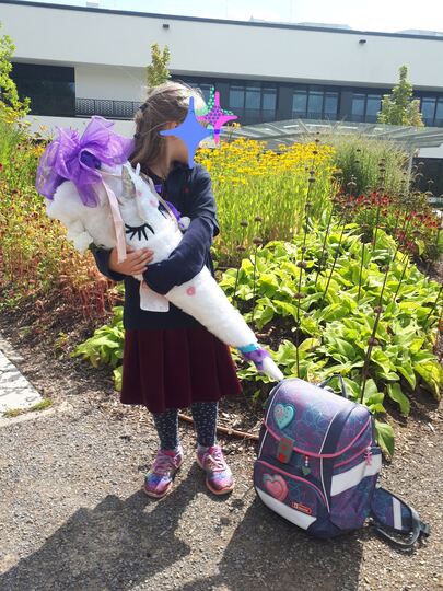 Da sagt es zu mir: „Hallo Menschenfrau! Ich weiß, Du hast ein Kind, das bald in die Schule geht!Ich möchte gerne mit ihm gehen. Ich möchte mich in den Arm des Mädchens kuscheln und als zauberhaftes Wesen dem Kind Kraft und Mut geben für diesen großen Tag!