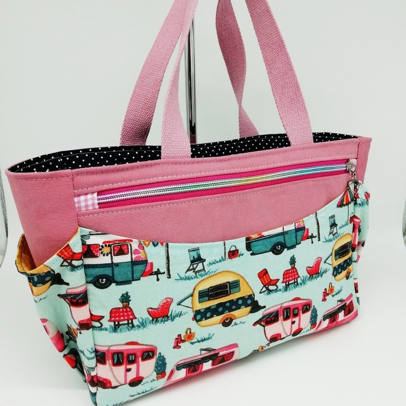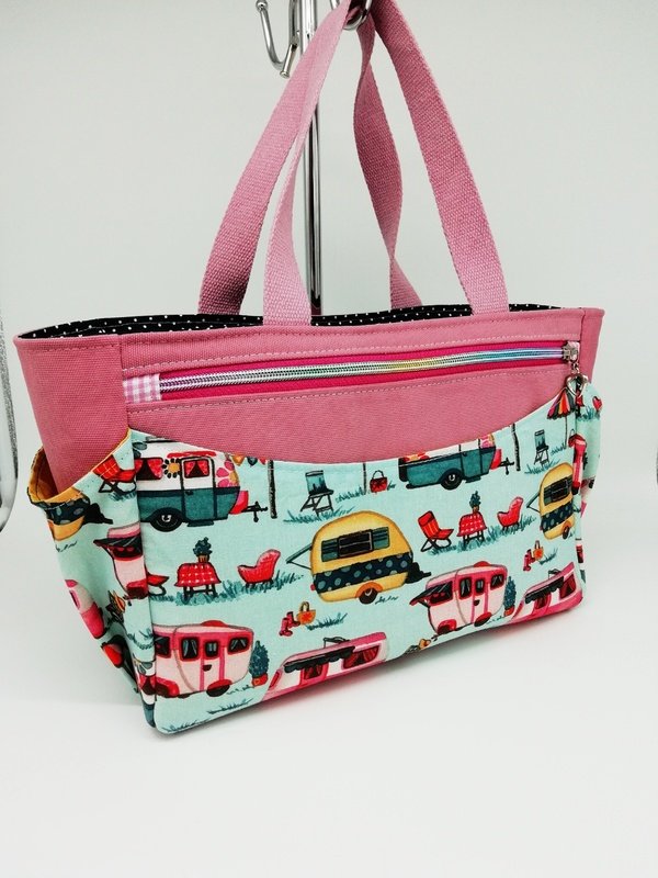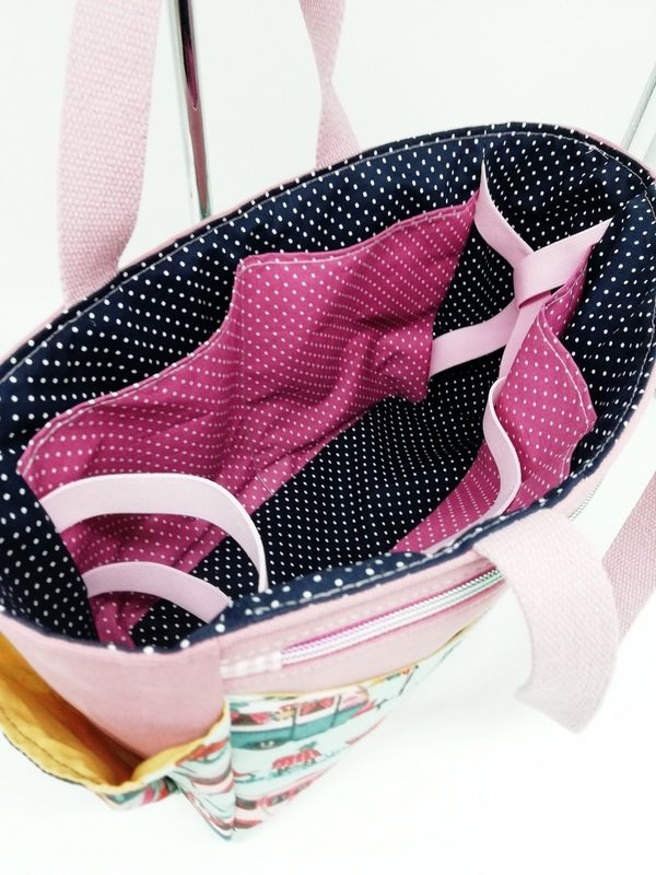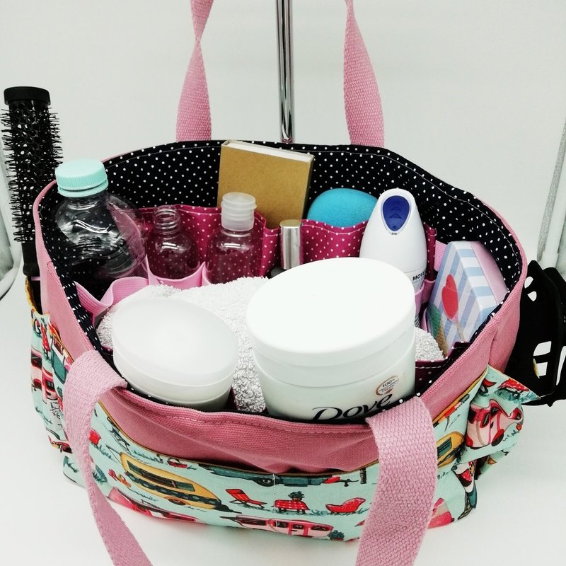 Die geschwungenen Außentaschen und Innenfächer sind toll für den ganzen Kleinkram wie Duschgel, Shampoo, Haarbürste und bieten auch sonst für anderes eine Menge Platz.