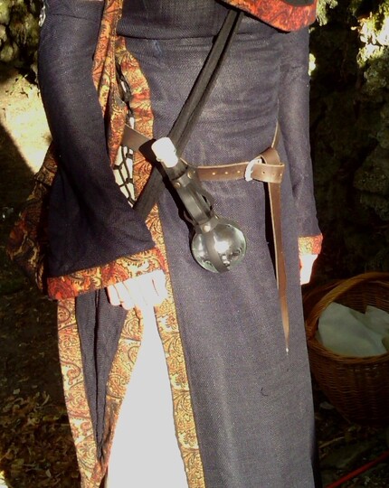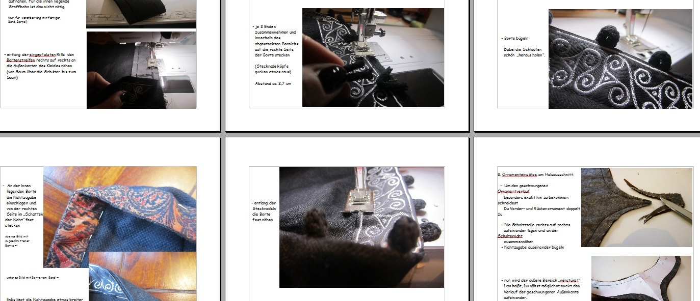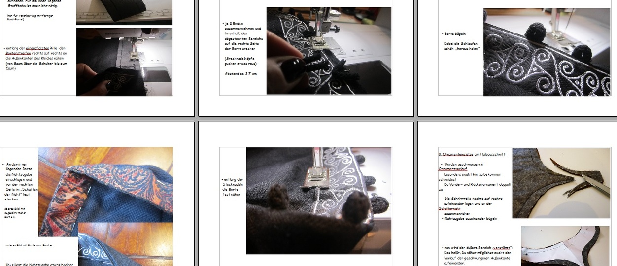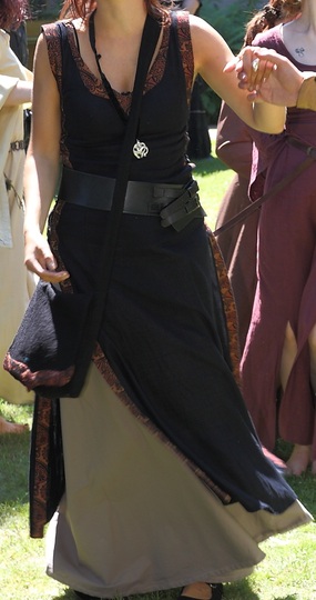 Der Kleiderschnitt besteht aus einem schlichten Unterkleid und einem Überkleid mit Borte & Ornamentausschnitt.
