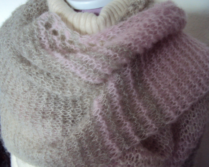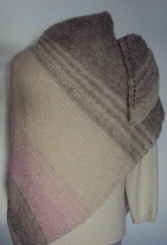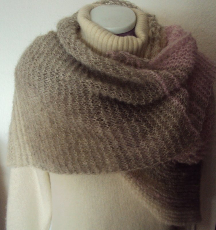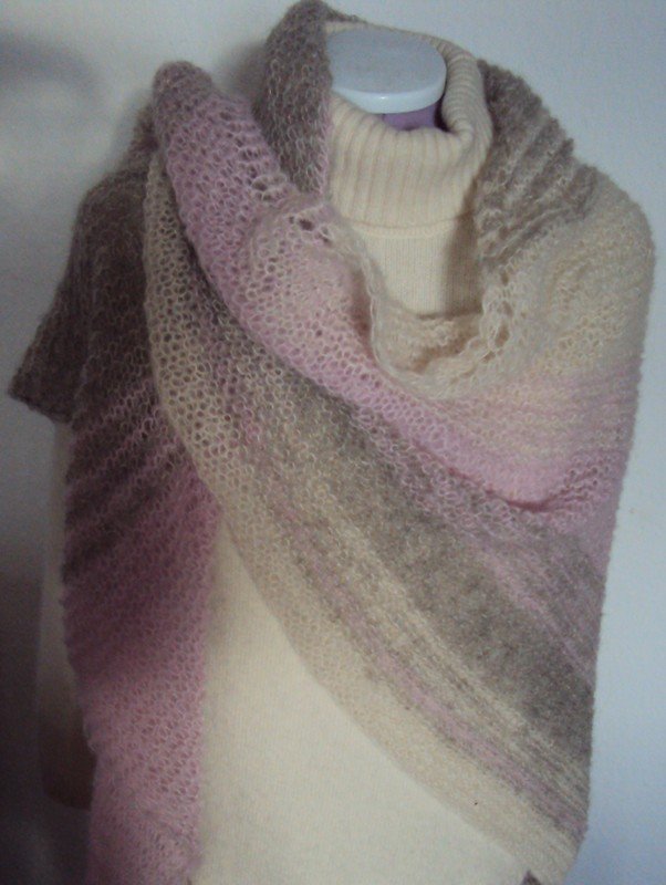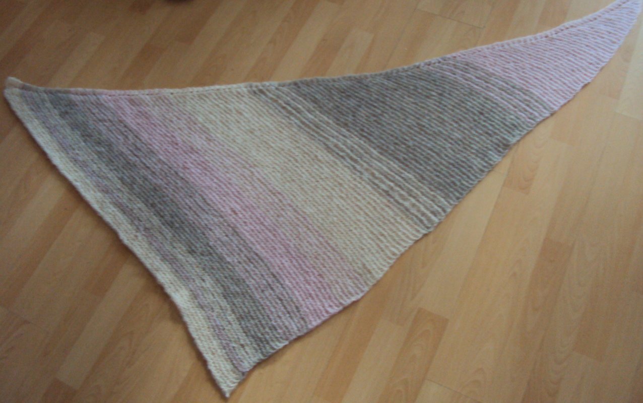 Der flauschige, leichte Schal ist 230 / 185 /140 cm groß (an den Kanten gemessen) und strickt sich leicht und schnell. Sie brauchen 75 g Garn und eine Rundstricknadel Nr. 6. Können müssen Sie: Maschen anschlagen, Maschen abketten, rechte Maschen und Umschläge. Die Anleitung ist ausführlich erkärt mit vielen Bildern.