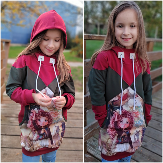 Das Schnittmuster ist in Echtgröße (du nähst hier nach echter Körpergröße) gradiert und enthält keine Naht- und Saumzugabe. Es umfasst die Größen 80 bis 152 und ist damit für eine Körpergröße zwischen 80 und 157cm geeignet. In den Dateien findest du die A4-Versionen zum Ausdrucken, eine Großdruckdatei sowie die Beamerdatei - alle Versionen inkl. Ebenen zum Ein- und Ausblenden der Größen. Agatha ist auf dickere, dehnbare Stoffe wie Sweat, Strick, French Terry usw. ausgelegt. Die Abschlüsse werden bei Agatha mit einem Bündchen genäht.
