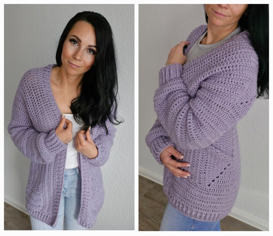 Diese Jacke besteht überwiegend aus Stäbchen und geht daher auch super schnell von der Hand. Sie wird dir ein toller Begleiter in den kommenden Frühlingstagen sein. Die Jacke setzt sich aus einem großen Quadrat und den Seitenteilen zusammen. Die Ärmel werden direkt an die Jacke gehäkelt.