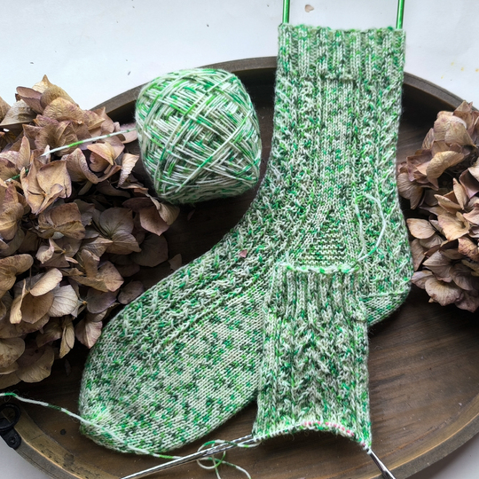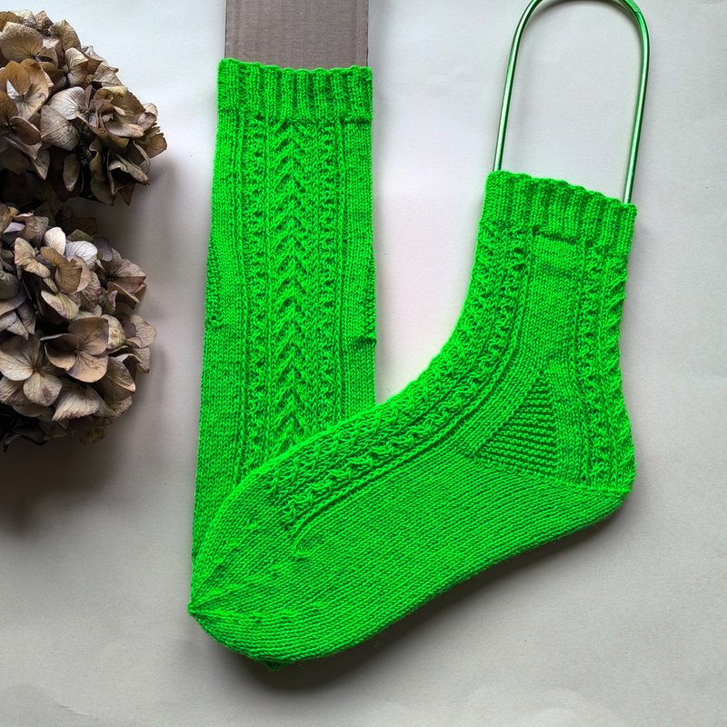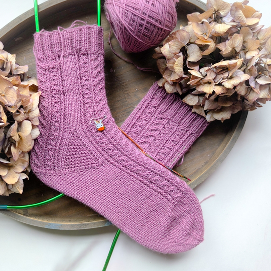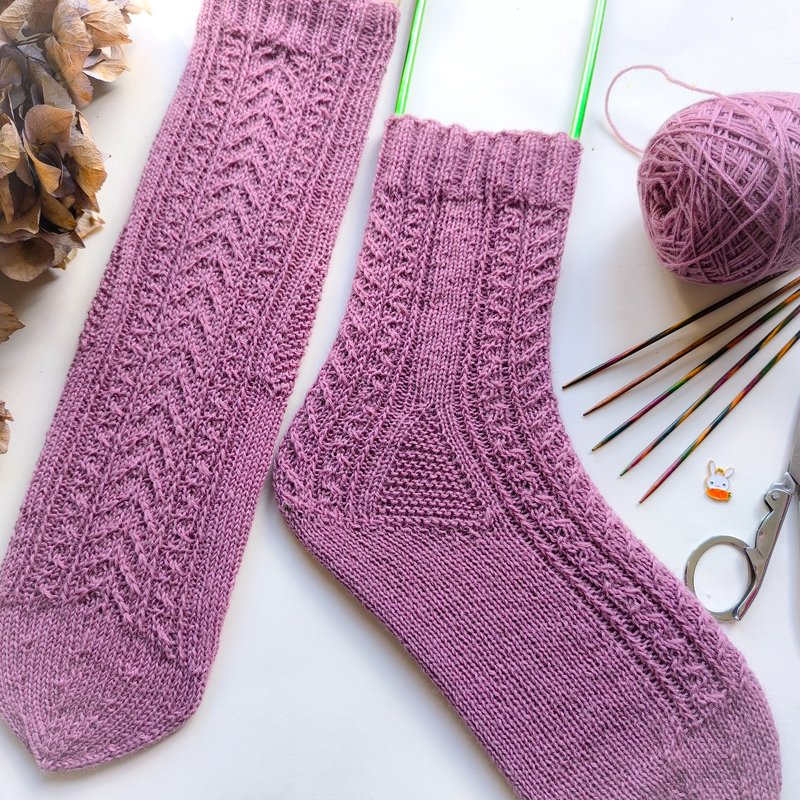 Die Zunahmeferse, die das Muster an der Seite wie einen eleganten Reißverschluss öffnet – ist ein wahrer Blickfang! Abgerundet wird das Design durch die charmante Sternchenspitze.