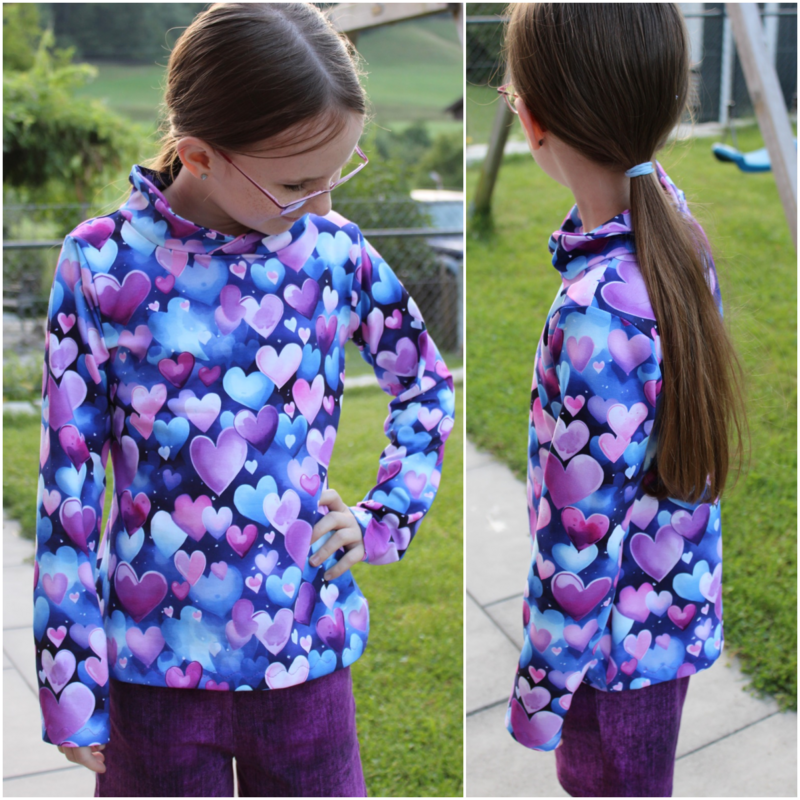 Das Schnittmuster ist in Echtgröße (du nähst hier nach echter Körpergröße) gradiert und enthält keine Naht- und Saumzugabe. Es umfasst die Größen 80 bis 152 und ist damit für eine Körpergröße zwischen 80 und 157cm geeignet. In den Dateien findest du die A4-Versionen zum Ausdrucken, eine A0-Datei sowie die Beamerdatei - alle Versionen inkl. Ebenen zum Ein- und Ausblenden der Größen. Betty ist auf Jersey oder weichen, leichten French Terry ausgelegt.