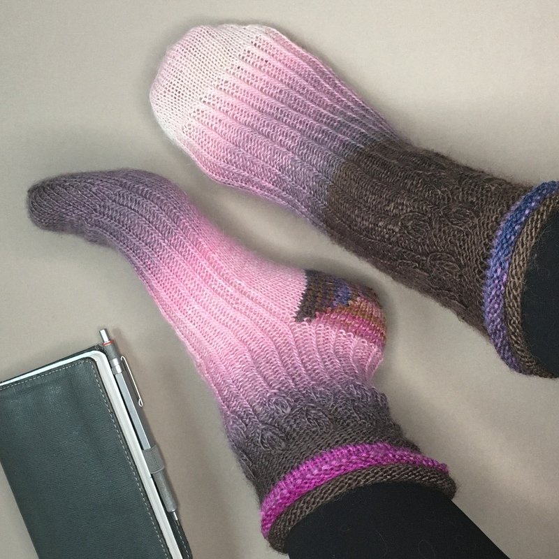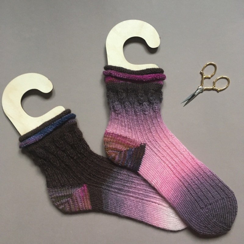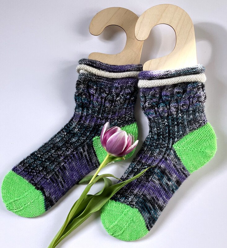 Anleitung für elastische Socken mit Doppelrollrand und mit Bumerangferse.