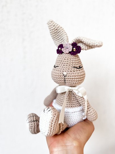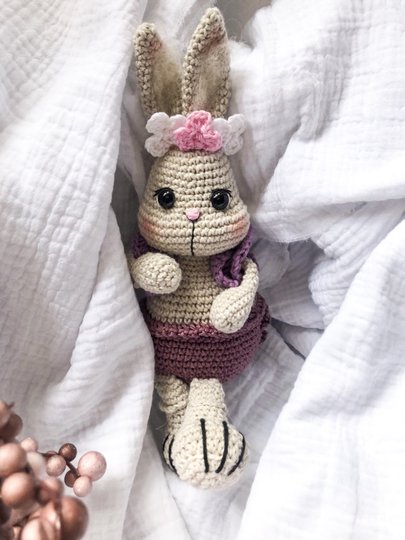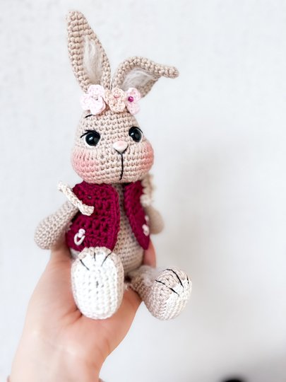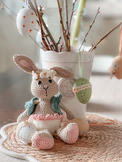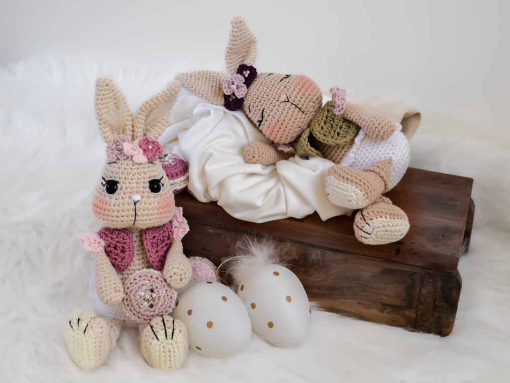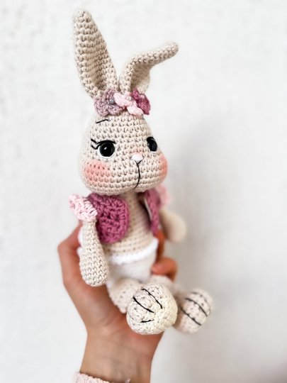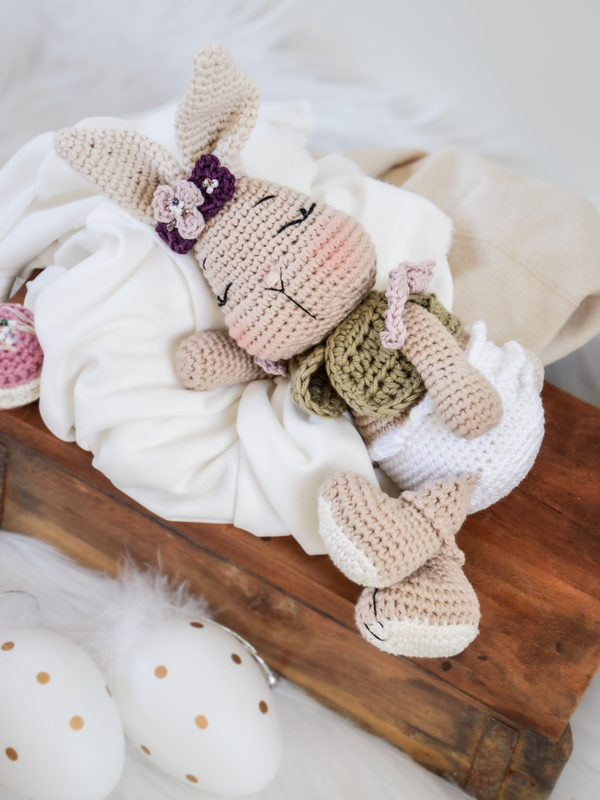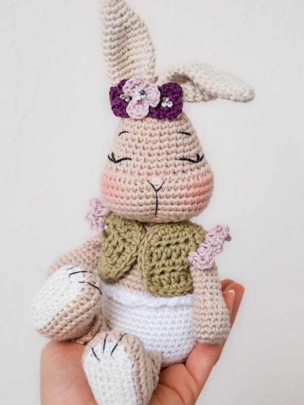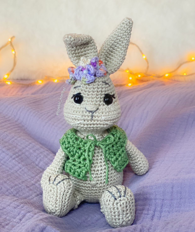 Der fertige Hase ist mit dem angegebenen Garn