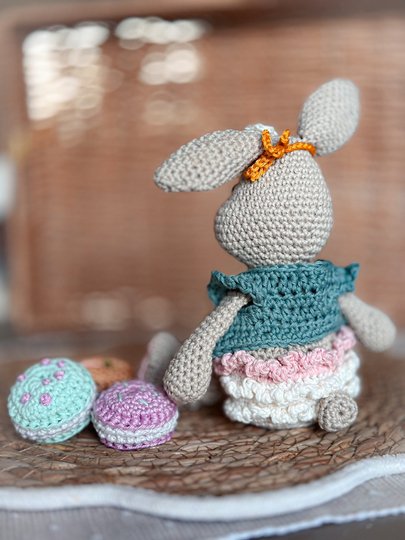 Du erhältst eine liebevoll gestaltete Häkelanleitung, mit der du Hase "Honey" und seine leckeren Macarons zum Leben erwecken kannst.