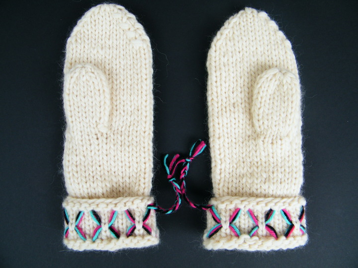 Anleitung für Fausthandschuhe im lappländischen Stil, Gr. M für Frauen geeignet. Für diese Handschuhe sollte man Übung im Rundstricken mit 5 Nadeln haben. Die Anleitung umfasst 3 Seiten und enthält eine detaillierte Beschreibung zum Stricken.