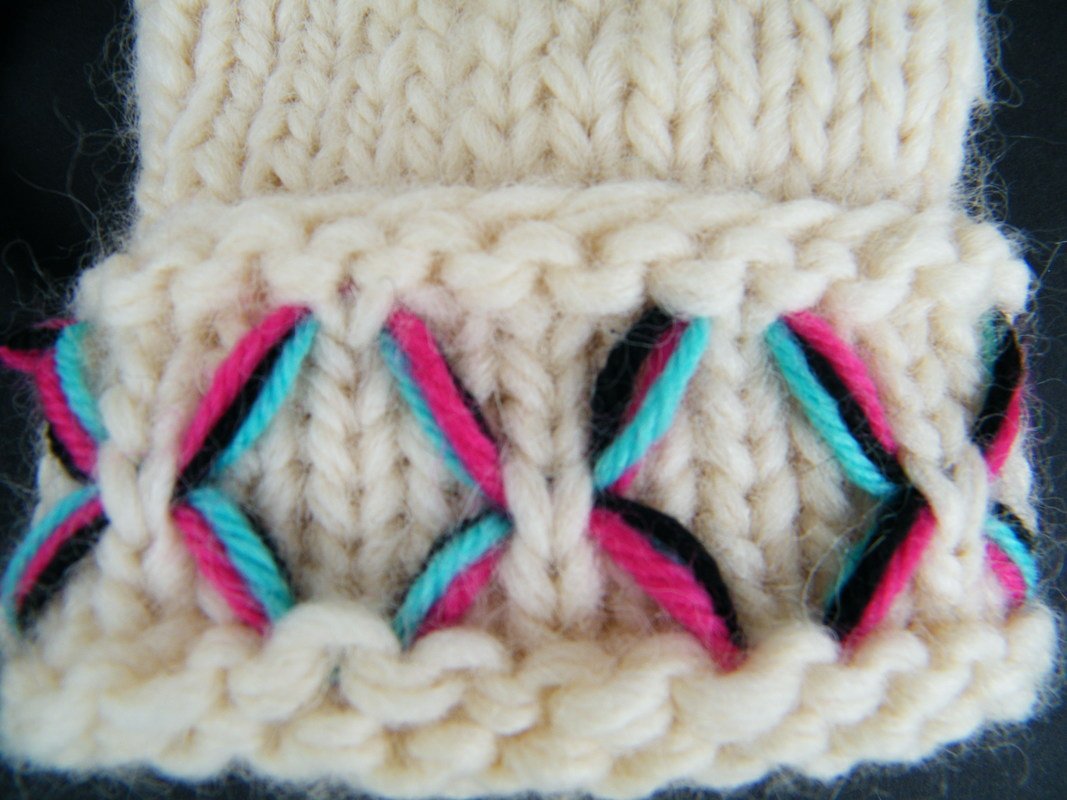 Es wird außerdem ein Nadelspiel mit 5 Nadeln in Gr. 7 (7 mm) benötigt.