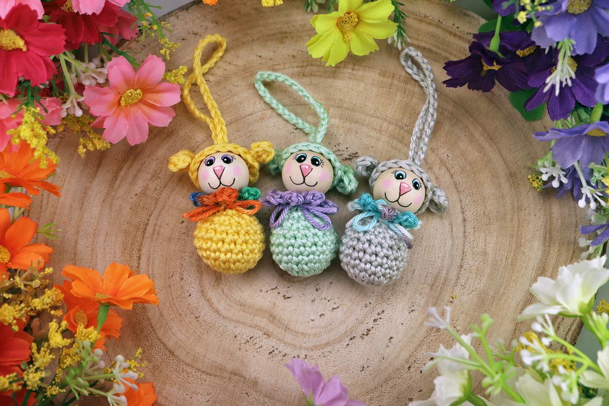 Du kannst die Schäfchen ganz nach deinen Vorstellungen gestalten: als zierliche Anhänger für den Osterstrauch oder Geschenke oder als originelle Blumenstecker, die deine Pflanzen kreativ aufwerten.
