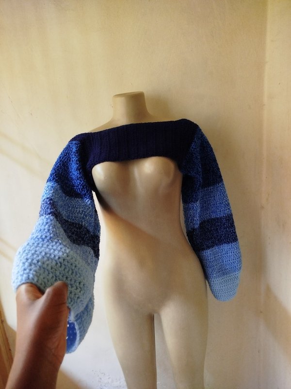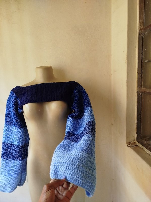 For this project, I combined navy blue, baby blue, sky blue and ocean blue yarns to come up with the variegation.