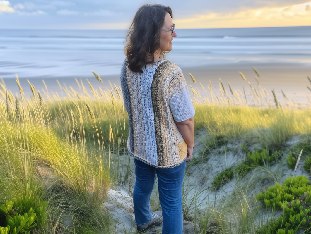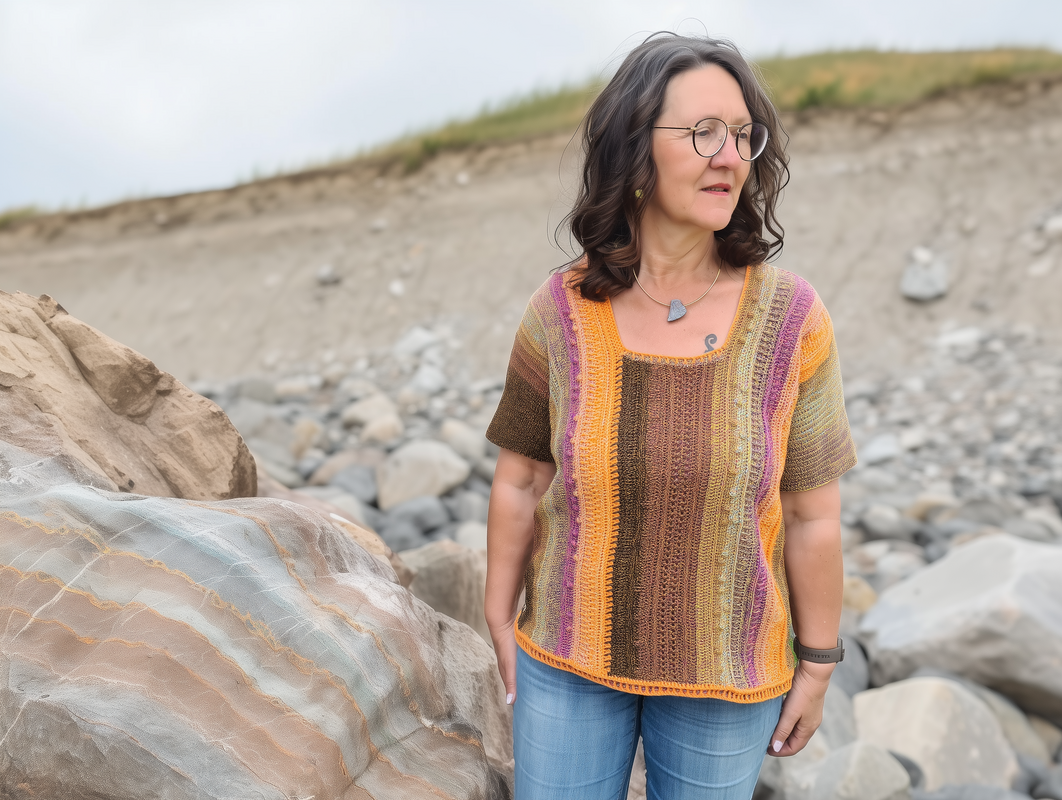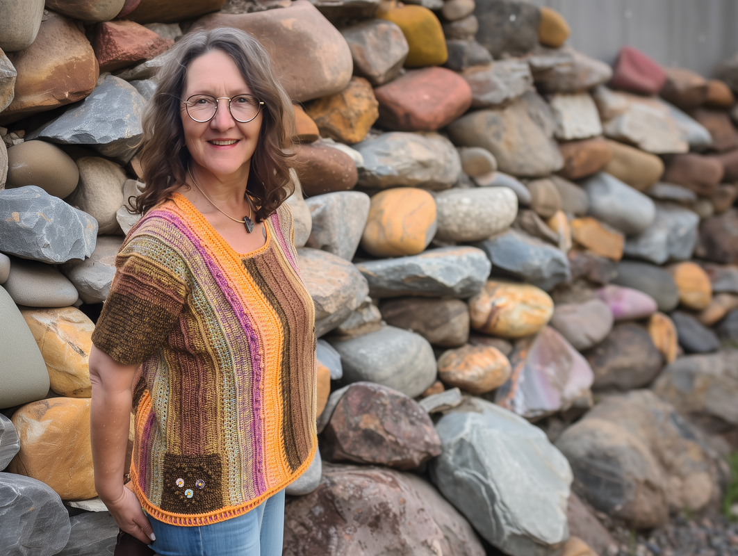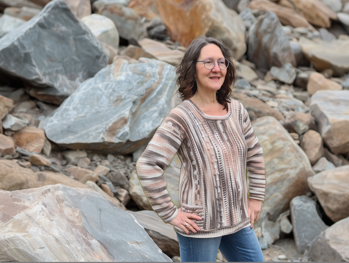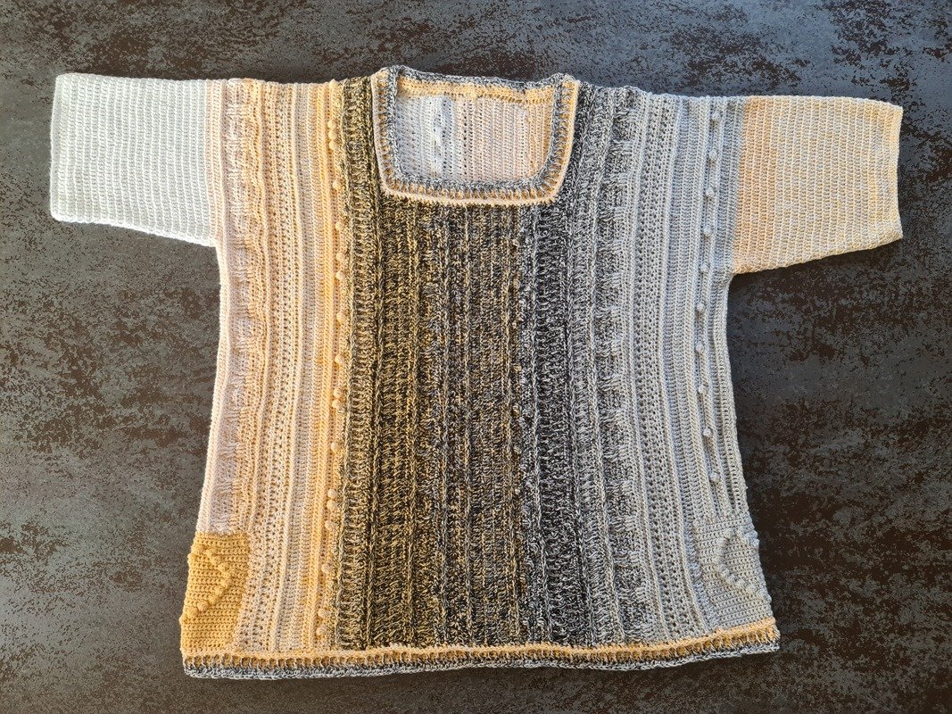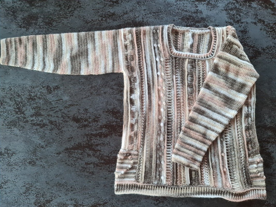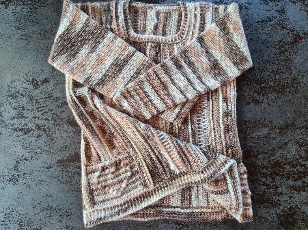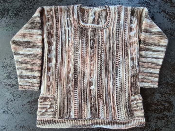 Der Häkelpullover ist flexibel an jede Größe anpassbar.
