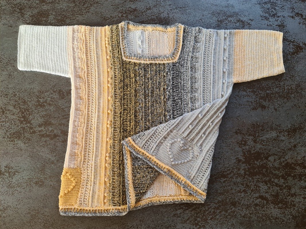 Der Würfelpulli No. 5 – HerzensHund wird von Arm zu Arm gehäkelt – ohne sichtbare Nähte! Das bedeutet: kein lästiges Zusammennähen, sondern ein fließender Übergang für eine perfekte Passform.