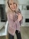 1) Foto Jacke:Farbverlaufsgarn, Wooly New Year von Woolypop, 3fädig +1 Faden Contessa Glitzer altrosa, mit Nadelstärke 3,0