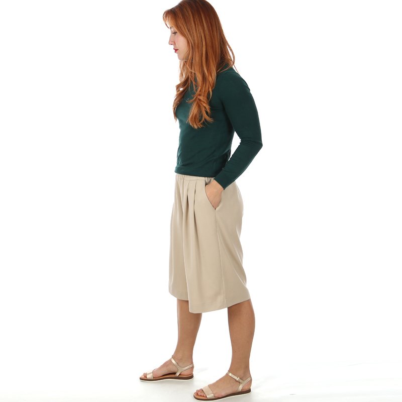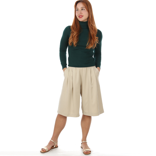 FRAU BEEKE ist bequem, praktisch und chic zugleich. Die Bermudashorts bedeckt knapp die Knie und sie hat eine angenehme Weite, die durch die tiefen Bundfalten verstärkt wird. Für die Bequemlichkeit hat FRAU BEEKE einen Gummizug im Bund und kommt ohne Verschlüsse aus. FRAU BEEKE ist ein stylisches Teil für viele Gelegenheiten. Im Sommer mit Sandalen, zur Party mit Highheels oder im Winter mit Boots. FRAU BEEKE passt sich Deinem Style an!