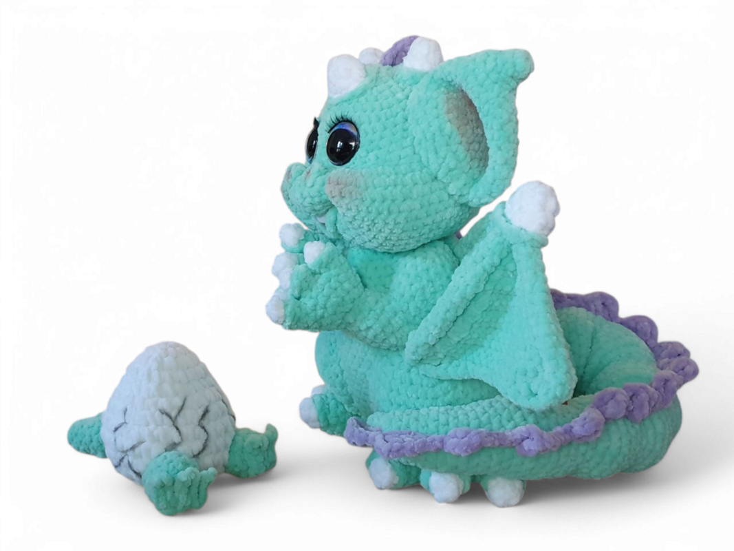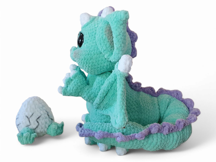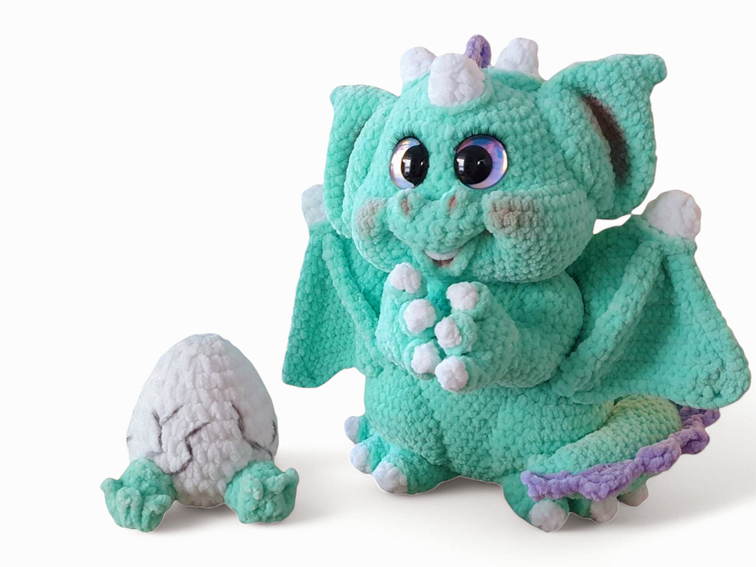 Mit Hilfe dieser detaillierten und illustrierten Schritt-für-Schritt-Anleitung kannst Du ganz einfach eine niedliche, freundliche und stolze Drachenmama häkeln. Jeder einzelne Schritt ist in der Anleitung festgehalten. Auch das Drachen-Ei ist in der Anleitung mit dabei.