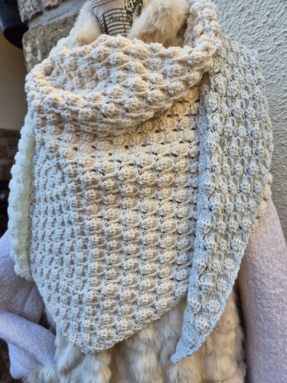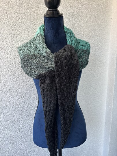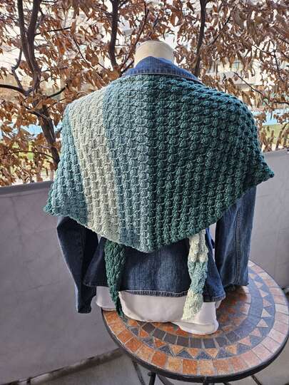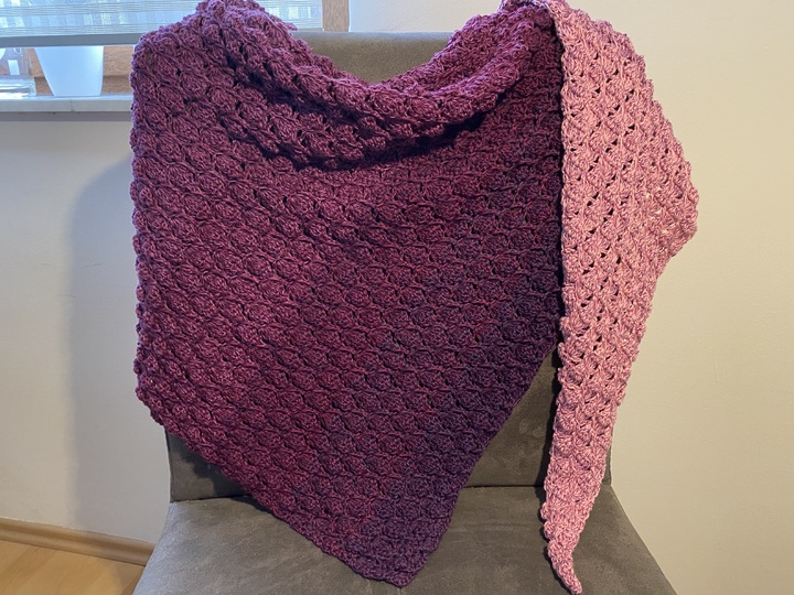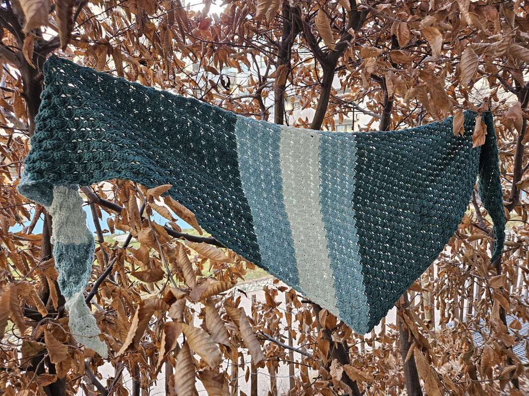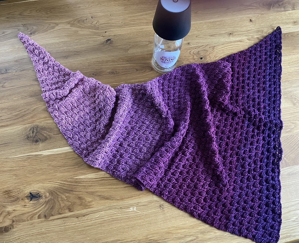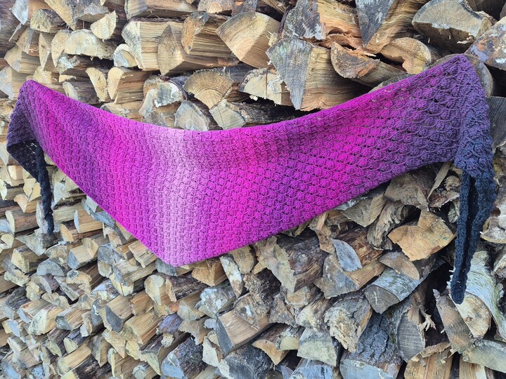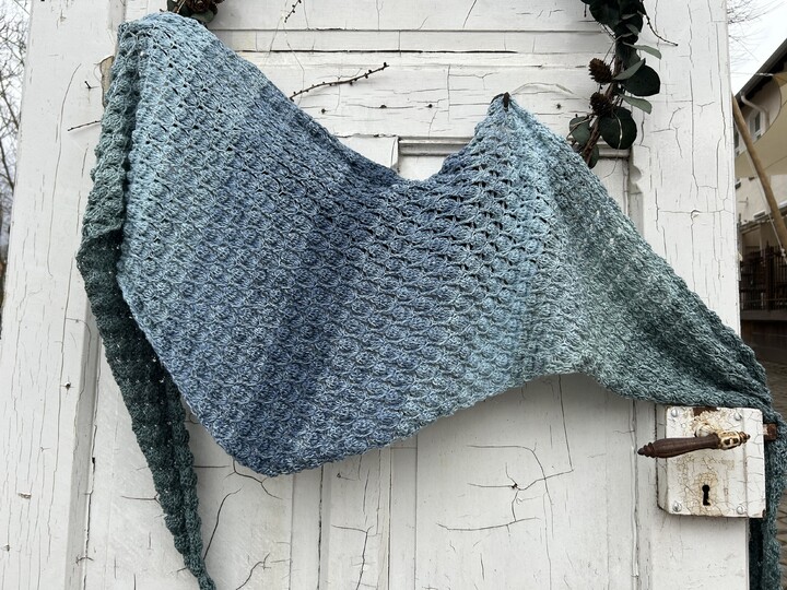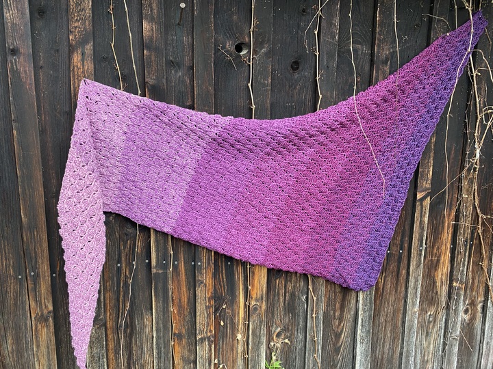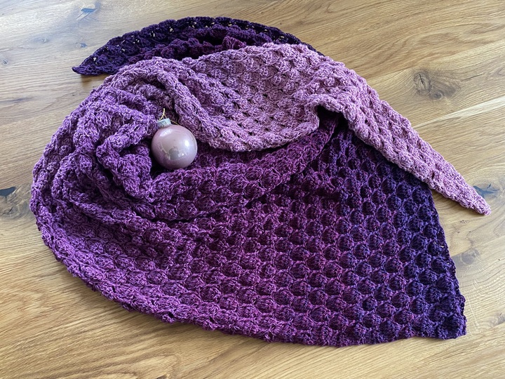 Das Tuch kann in beiden Varianten (symmetrisch und asymmetrisch) in beliebiger Größe gearbeitet werden. Bei der symmetrischen Variante häkelst du nach der Hälfte des Garns bzw. nach der Hälfte deiner Wunschgröße einfach wieder retour.