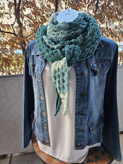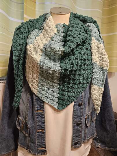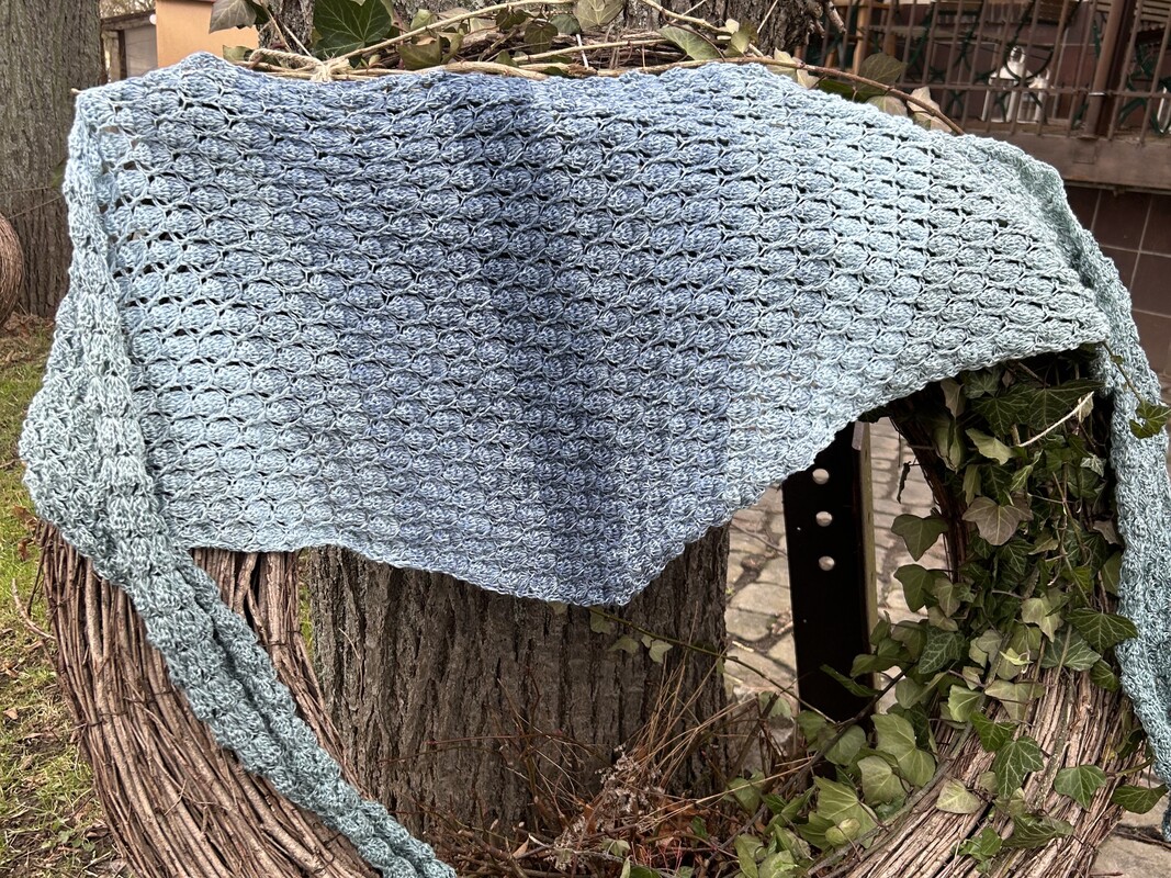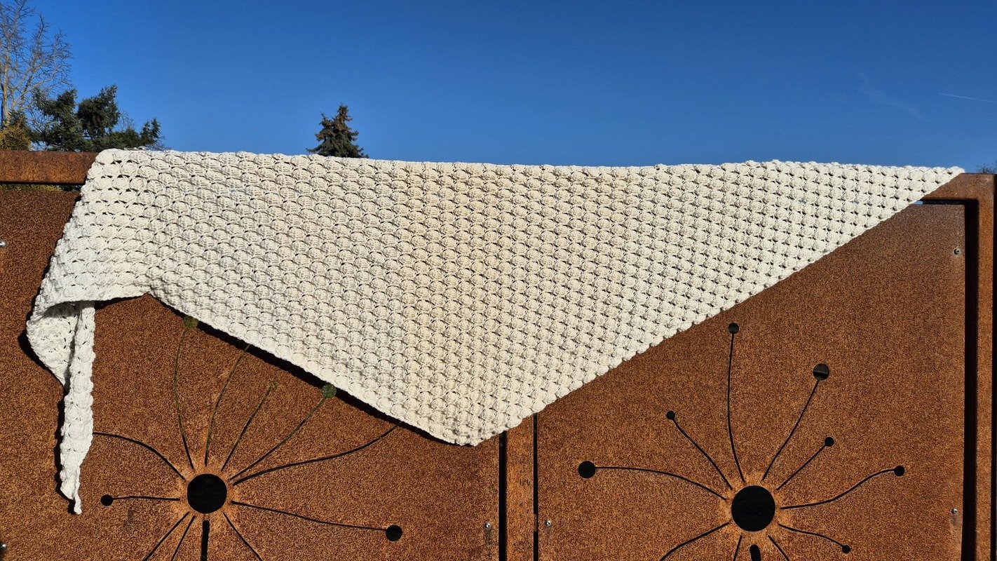 Du kannst das Tuch mit beliebigem Garn häkeln. Die benötigte Garnmenge ist abhängig von der Wunschgröße, dem gewählten Material und deinem persönlichen Häkelstil.