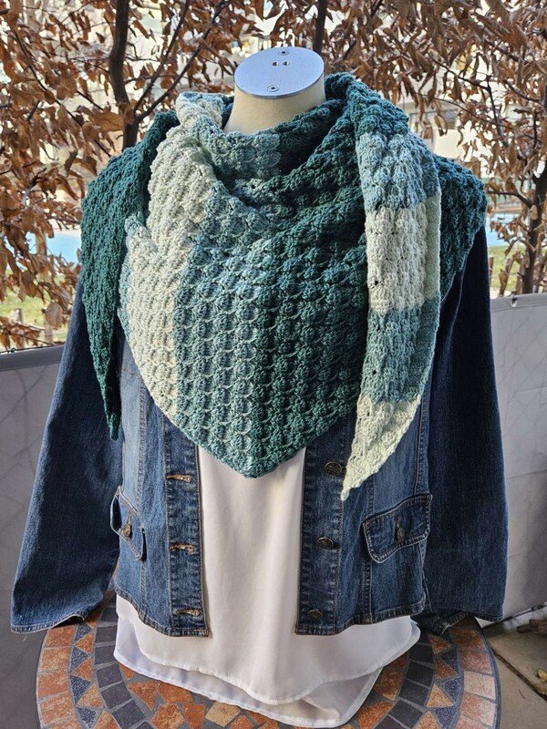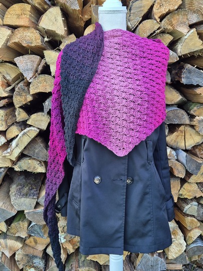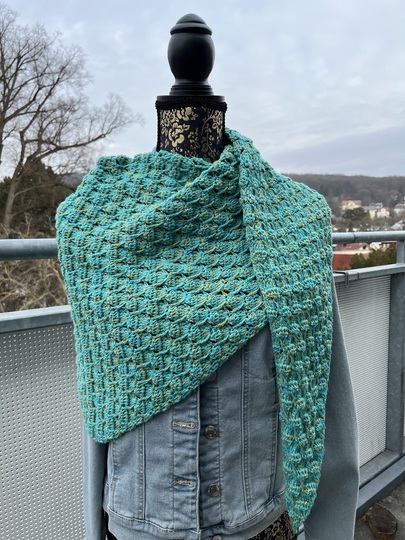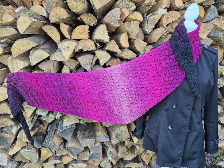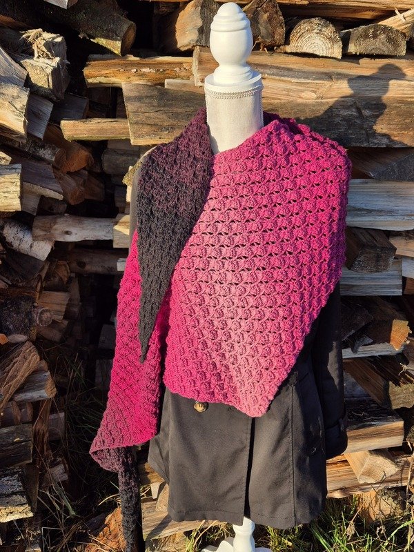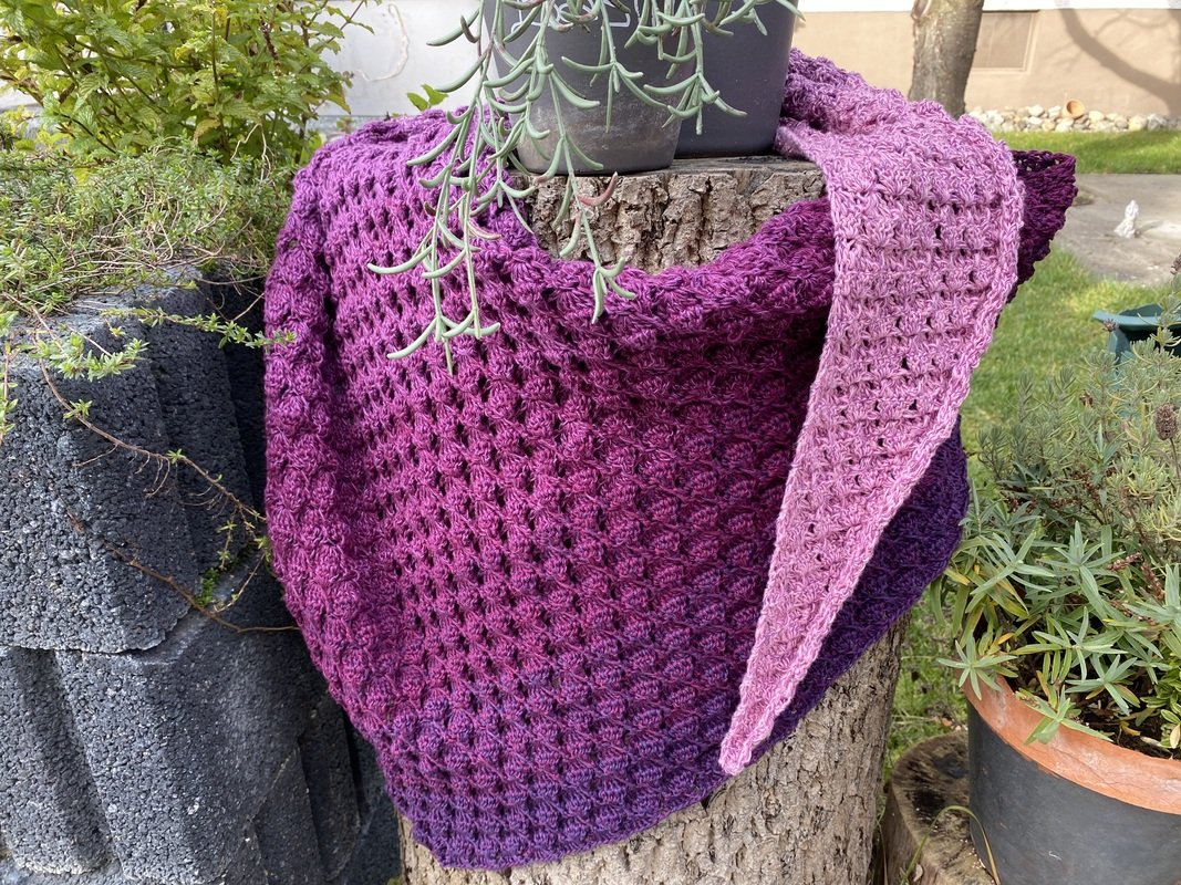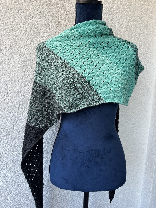Mit der Anleitung Mad Diamond kannst du dir wahlweise ein flaches Side-to-Side-Dreieckstuch oder ein asymmetrisches Tuch häkeln.