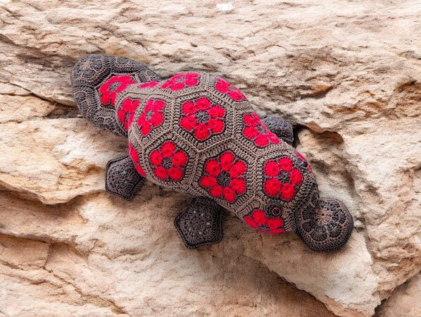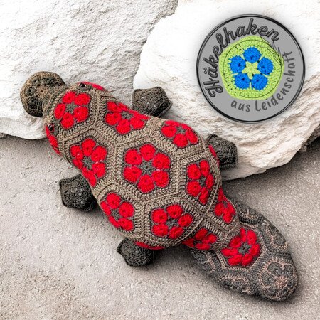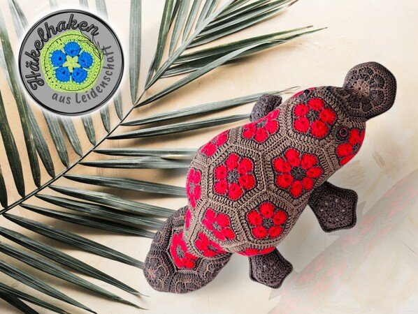 Das Schnabeltier besteht aus 41 wunderschönen Blumenmotiven, die du zuerst einzeln häkelst und dann zu einem kunstvollen Ganzen zusammenfügst.