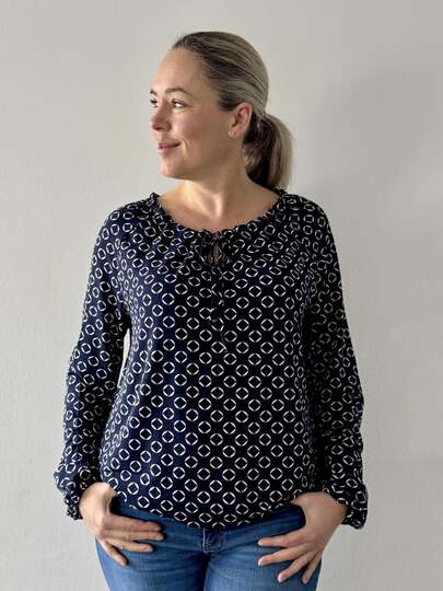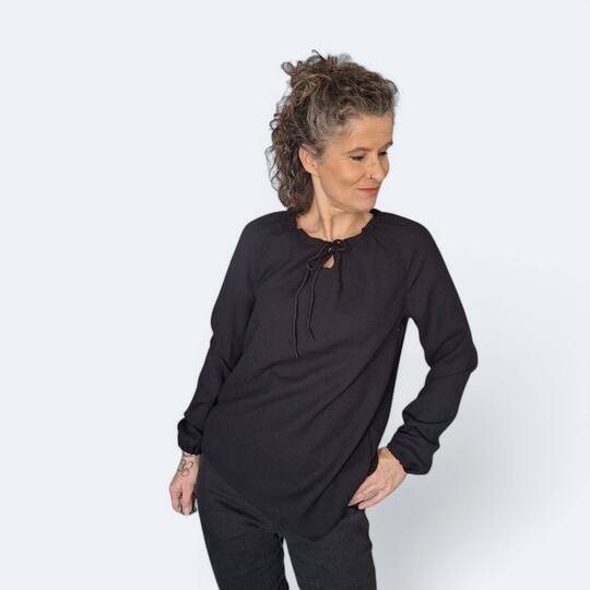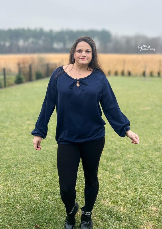 SCAPOLI lässt sich aus verschiedenen Stoffen wie Viskosewebware, Blusenstoffen, Viskosejersey und leichten Jerseystoffen nähen – für zahlreiche Styling-Möglichkeiten.Der Abschluss am Saum und an den Ärmeln wird mit einem Gummi verziert, was für einen modernen und bequemen Look sorgt.
