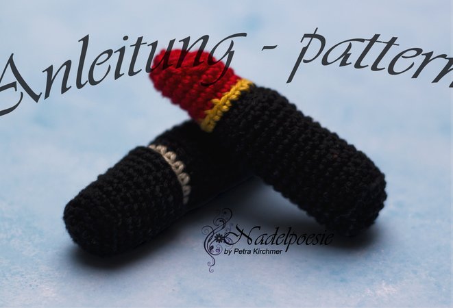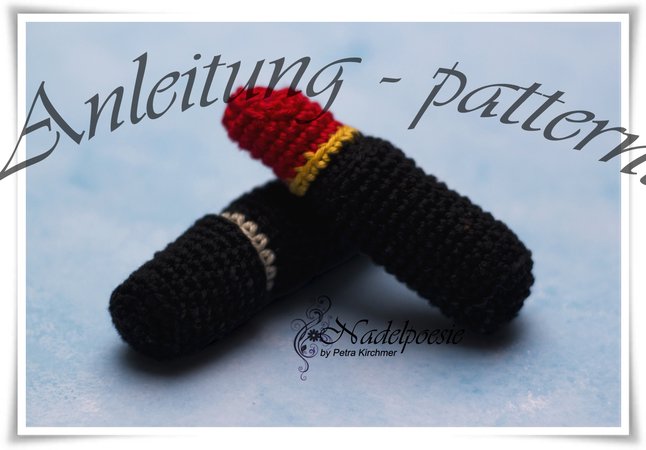 PDF-Anleitung für einen gehäkelten Lippenstift.