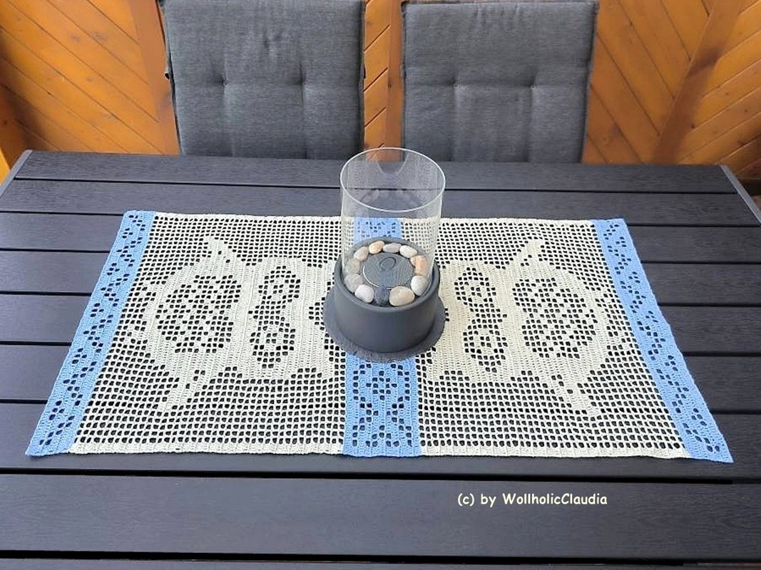 Beim vorgestellten Produkt handelt es sich nicht um den fertigen Tischläufer, sondern um Häkelanleitungen zum Selbstanfertigen als PDF-Datei zum Runterladen. Solltest du Fragen zur Anleitung haben, schreibe mir gern eine Nachricht, dann bekommst du bei Problemen Hilfestellung.