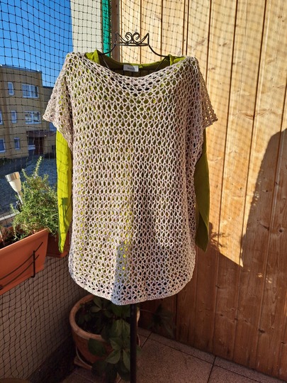 Oversize Shirt oder einem bauchfreien Shruggie, einem luftigern Pullover, Kaftan oder Strandkleid.