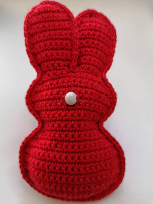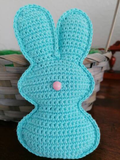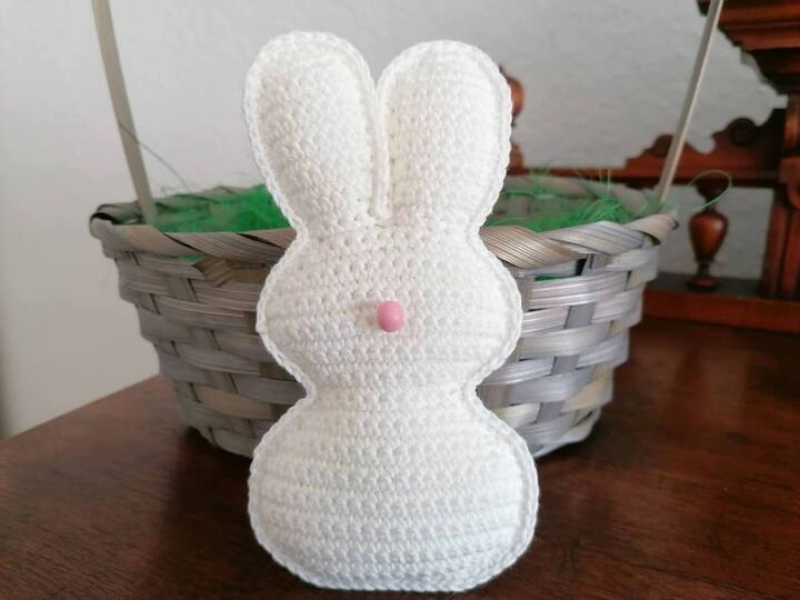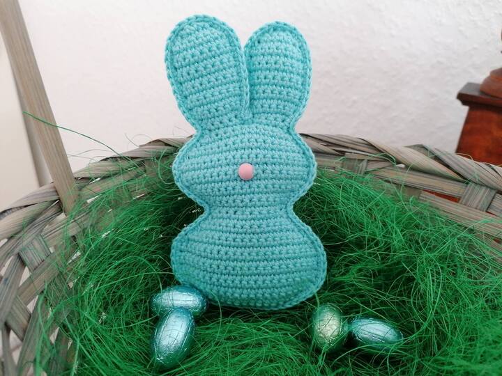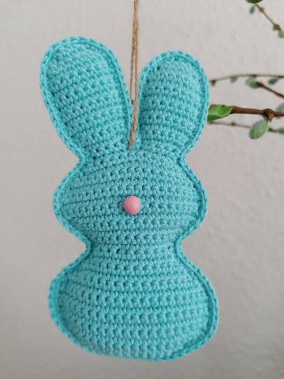 Dieses süsse Häschen kann leicht ausgestopft und bei einer Größe von ca. 14 cm (je nach verwendeter Wollstärke) als Deko (auch zum Aufhängen), aber auch als Geschenkanhänger o.Ä. verwendet werden.