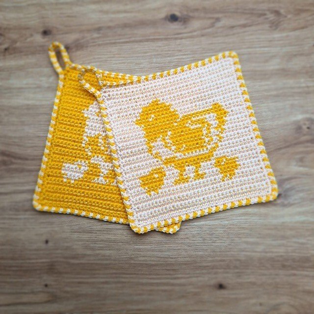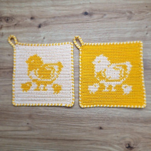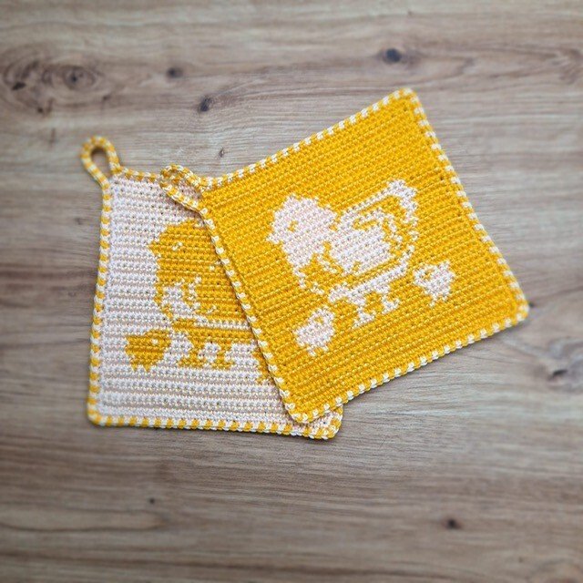 Diese Topflappen sind der Klassiker unter den gehäkelten Topflappen. Sie schützen die Hände nicht nur vor z.B. zu heißen Topfgriffen, sondern sie verschönern auch jede Küche. Gleichzeitig können sie auch als Untersetzer verwendet werden.