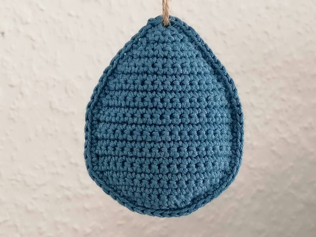 Das Gewicht kann je nach Größe und verwendetem Füllmaterial ebenfalls variieren. Beim Häkeln mit reiner Baumwolle wurden die Eier etwas schwerer.