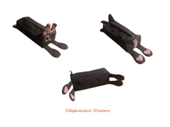 Die Kissenhülle ist ca. 40 x 40 cm groß. Das Plüschtier ist 42 cm hoch. Und die Federtasche hat eine Größe von 20 x 8 cm.