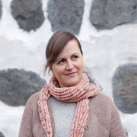 Das falsche Patentmuster ist ein wunderbar einfaches Strukturmuster: Nur mit rechten und linken Maschen erzeugst du wunderschöne dreidimensio¬nale Linien, die aussehen wie Patentmuster, aber viel schneller und leichter zu stricken sind. Der ENNA shawl entsteht von Spitze zu Spitze. Seine Längsrippen nehmen in der Mitte der Reihen ihren Anfang, indem die Zunahmen und Abnahmen abwechselnd auf der rechten und linken Seite gearbeitet werden. Dieses Tuch kann mit jeder Garnstärke und Ma¬schenprobe gestrickt werden, aber die edlen Garnkombinationen, die ich für meine Beispielexemplare verwendet habe, ergeben ein fantastisches Maschenbild, das die Struktur des Musters besonders gut hervortreten lässt. Du kannst das Tuch ein- oder zweimal um den Hals schlingen oder als großes Schultertuch tragen, um dich warmzuhalten. Teile dein Projekt gern mit dem Hashtag #ENNAshawl auf Instagram.