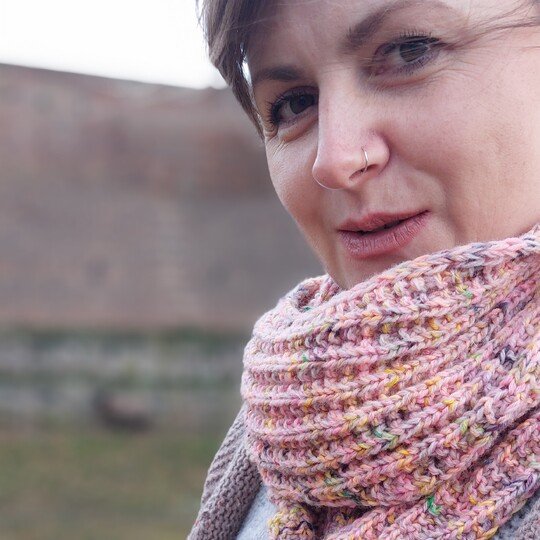 Der ENNA shawl ist so designt, dass er zweimal um den Hals geschlungen und geknotet werden kann. Du kannst die Größe nach Belieben anpassen und das Tuch in jeder erdenklichen Größe, Garnstärke, Maschenprobe und passenden Nadelstärke stricken.