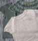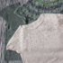 Das schlichte grüne Top ist einfädig, ohne Halsbündchen, mit schlichten Zunahmen (1 M aus dem Querfaden zunehmen) gearb, das Saum und die Ärmelbündchen sind in gebrochener Rippe (1 Rd re // 1 Rd: 1 M re, 1 M li im Wechsel str) gearb.