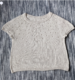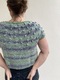 Das vordere Top ist einfädig, mit einfachen Eyelet-Zunahmen gestrickt. Die Bündchen werden durch je eine Rd li M hervorgehoben. Die Mehrlänge des Rückenteils ergibt sich durch einige verkürzte Reihen die direkt im Anschluss an die Trennung Rumpf/Ärmel gearb) werden.